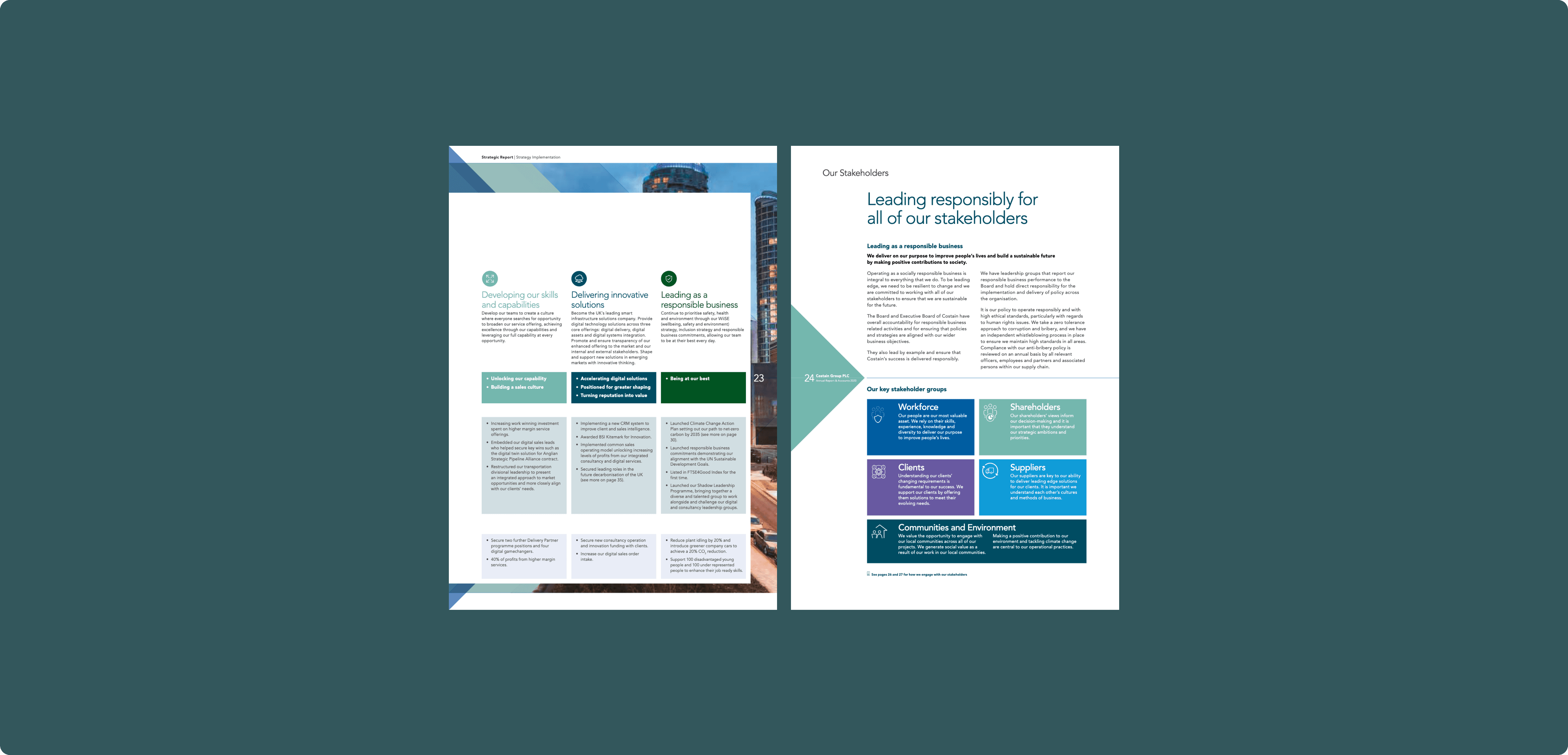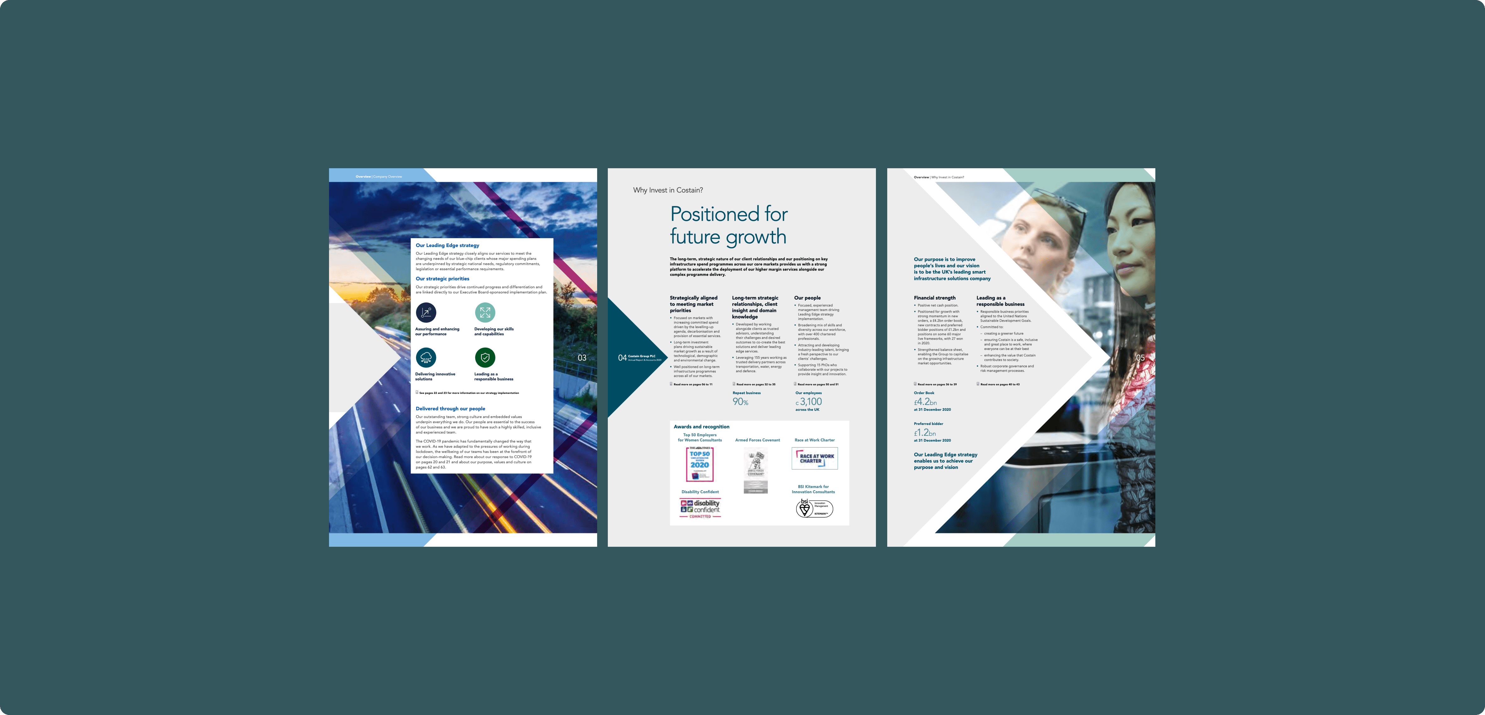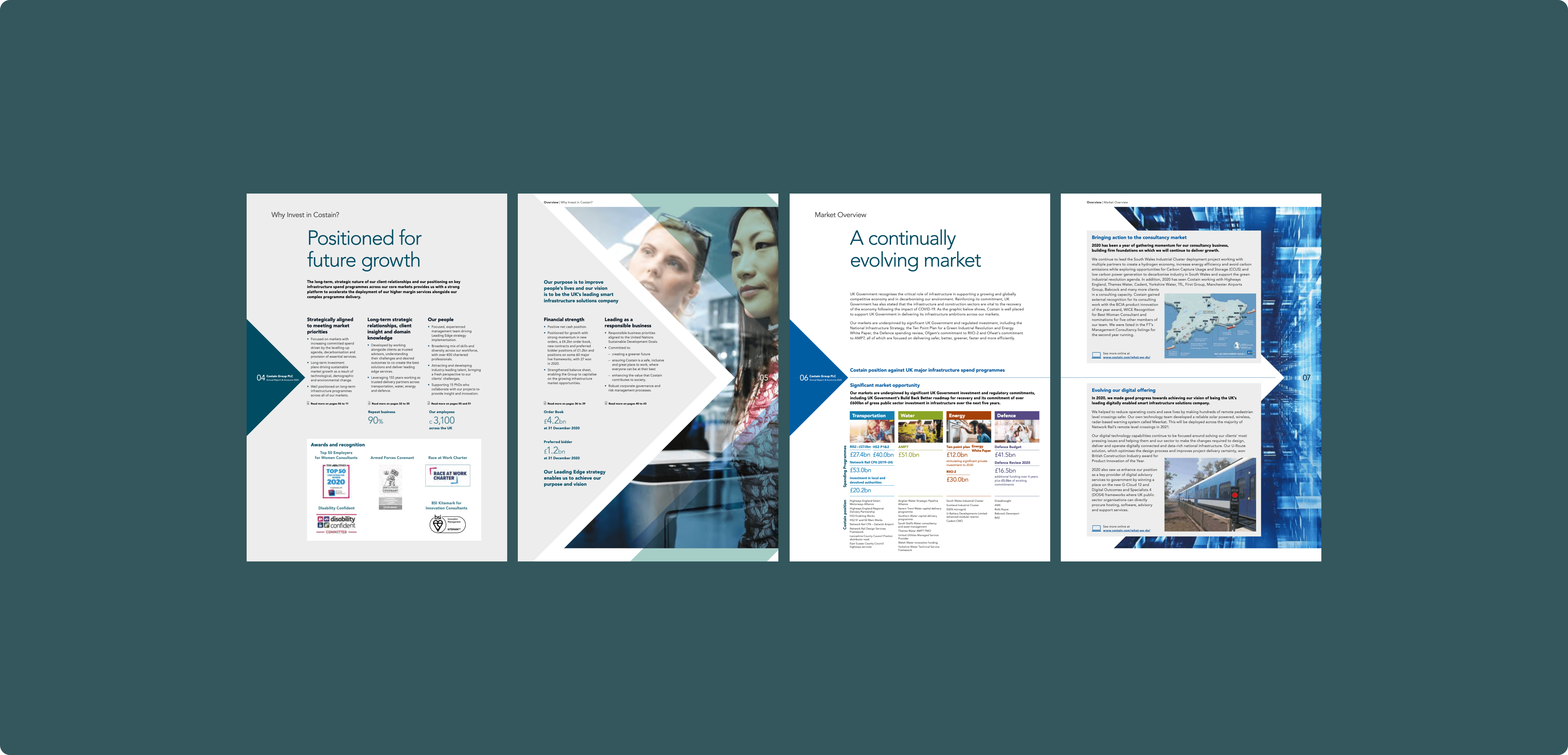 I led the design of Costain Group’s Annual Report, crafting a visually engaging and strategically structured publication that reflects the company’s core values, achievements, and future-forward vision. The goal was to balance robust corporate information with a compelling narrative and intuitive layout, supporting stakeholders in navigating the report with clarity and confidence. My role involved developing the visual identity for the report in alignment with Costain’s brand guidelines, selecting a clean and modern typographic system, and designing data visualizations that made complex information easily digestible. I worked closely with editorial, marketing, and investor relations teams to ensure accuracy and consistency across all sections—from CEO statements and financial highlights to ESG commitments and project spotlights. The final design delivered a cohesive blend of professionalism and innovation, reinforcing Costain’s position as a leading force in infrastructure solutions. This project demonstrates my ability to communicate strategic narratives through design, manage multidisciplinary collaboration, and translate detailed content into impactful, user-centered experiences.
